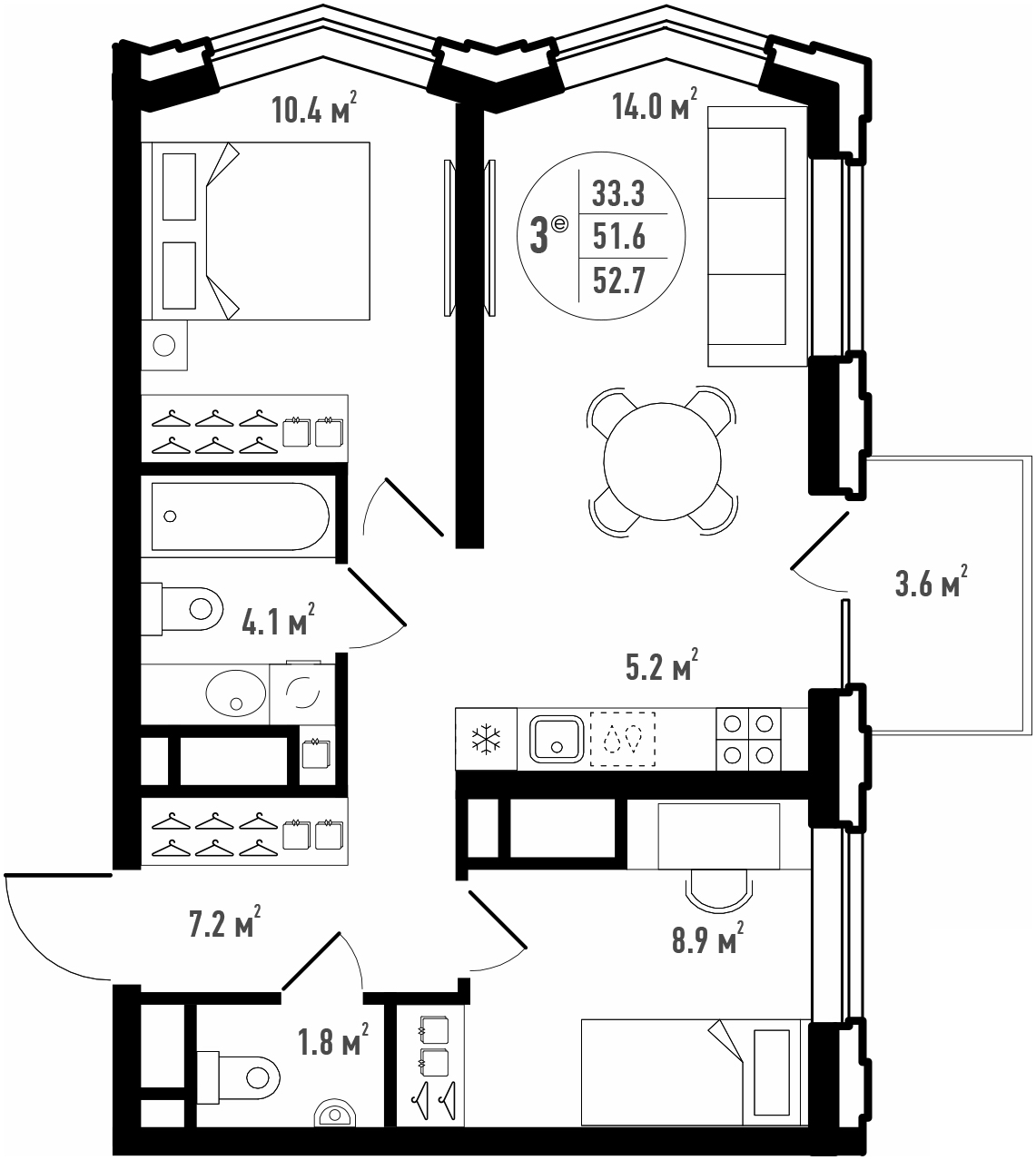 Общая площадь 52.7 м²
