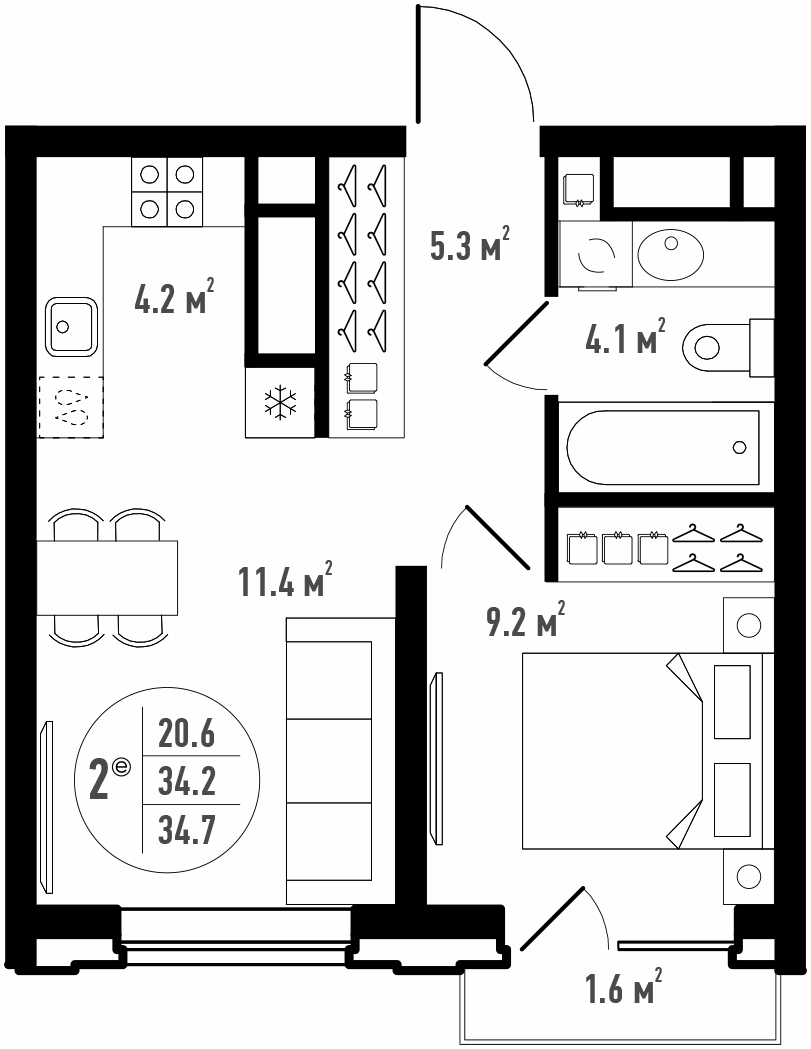 Общая площадь 34.7 м²
