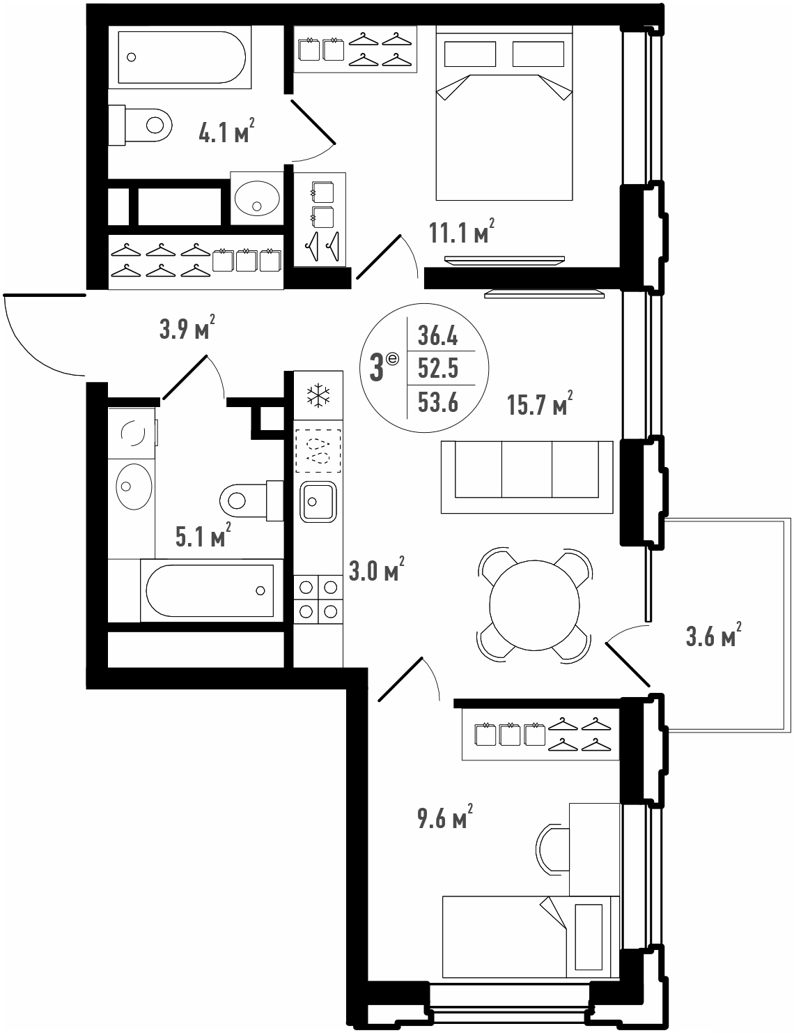 Общая площадь 53.6 м²
