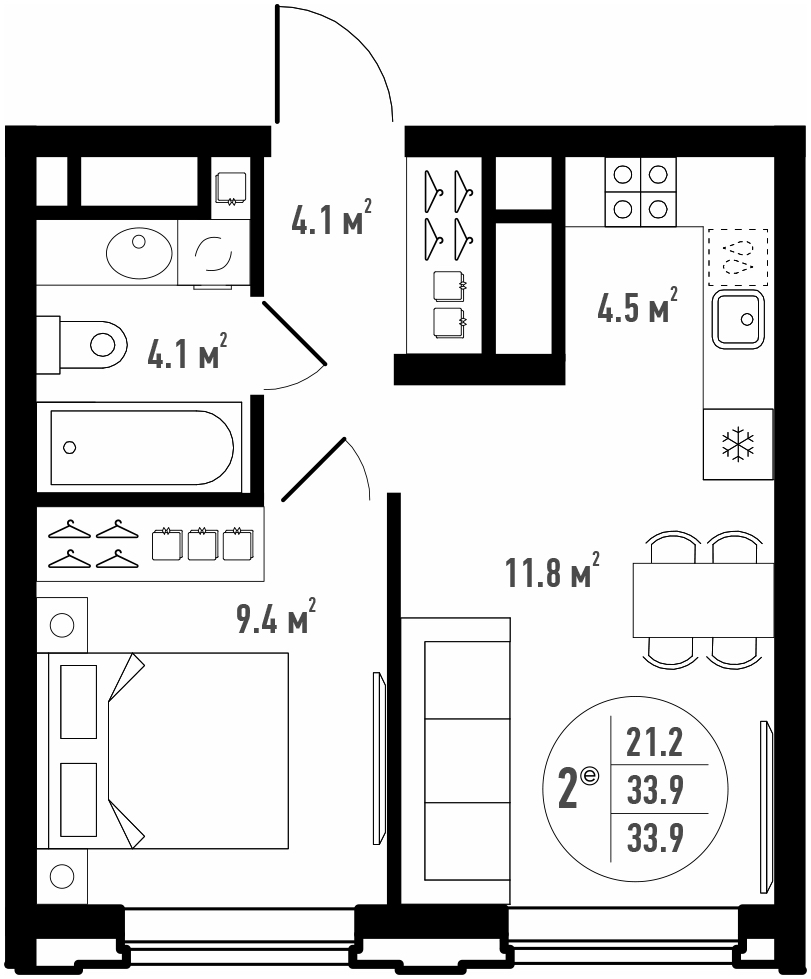 Общая площадь 33.9 м²