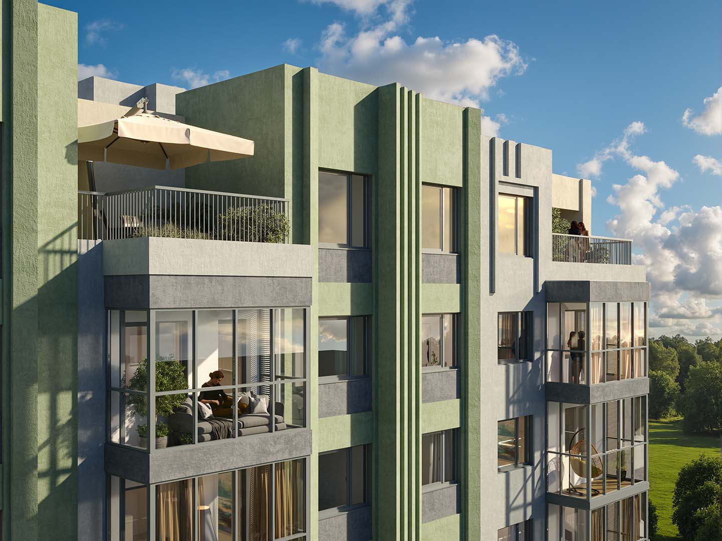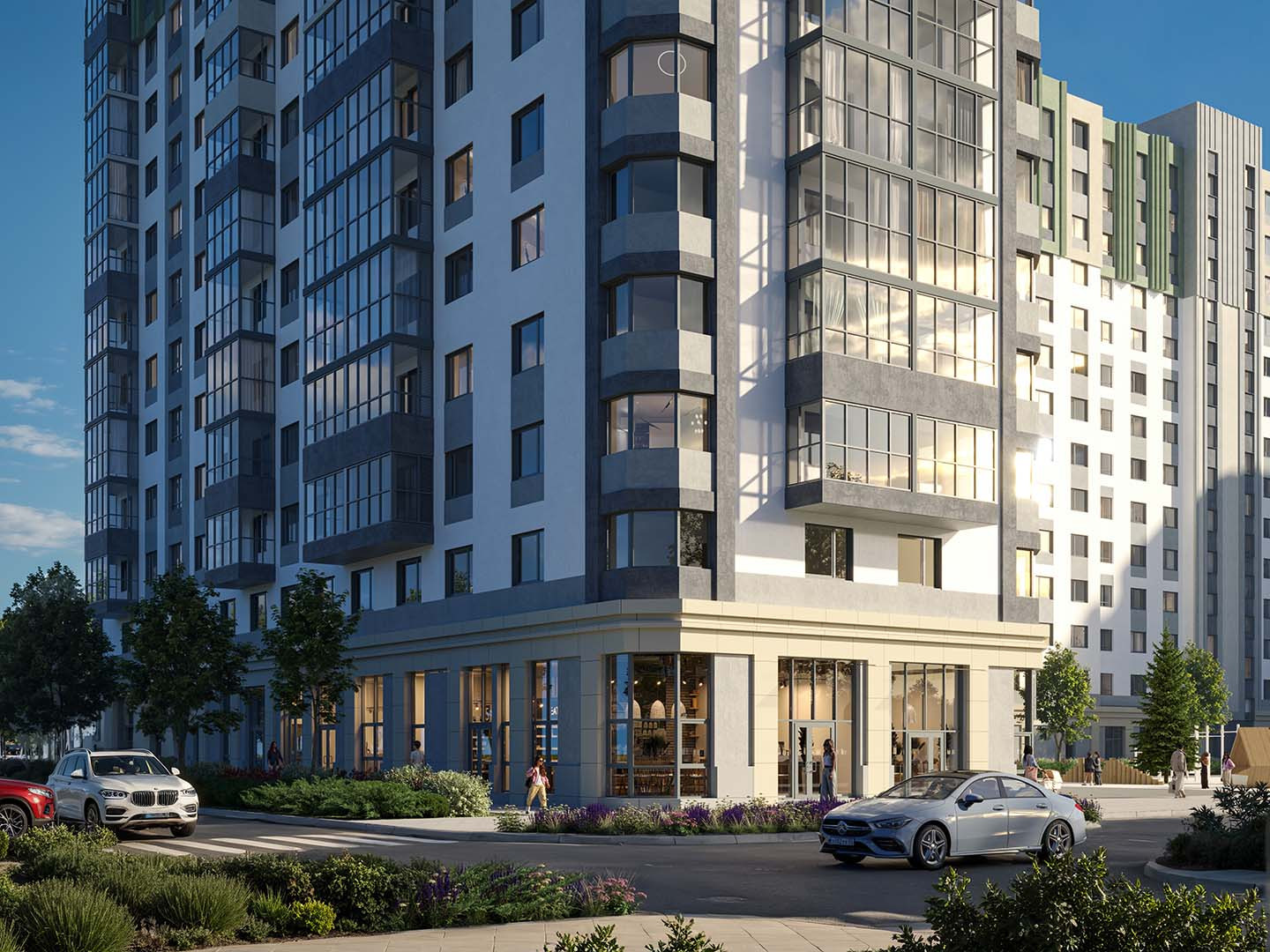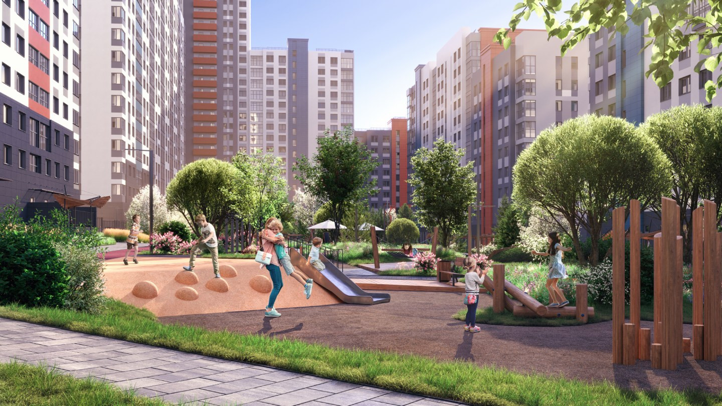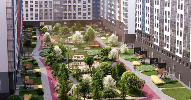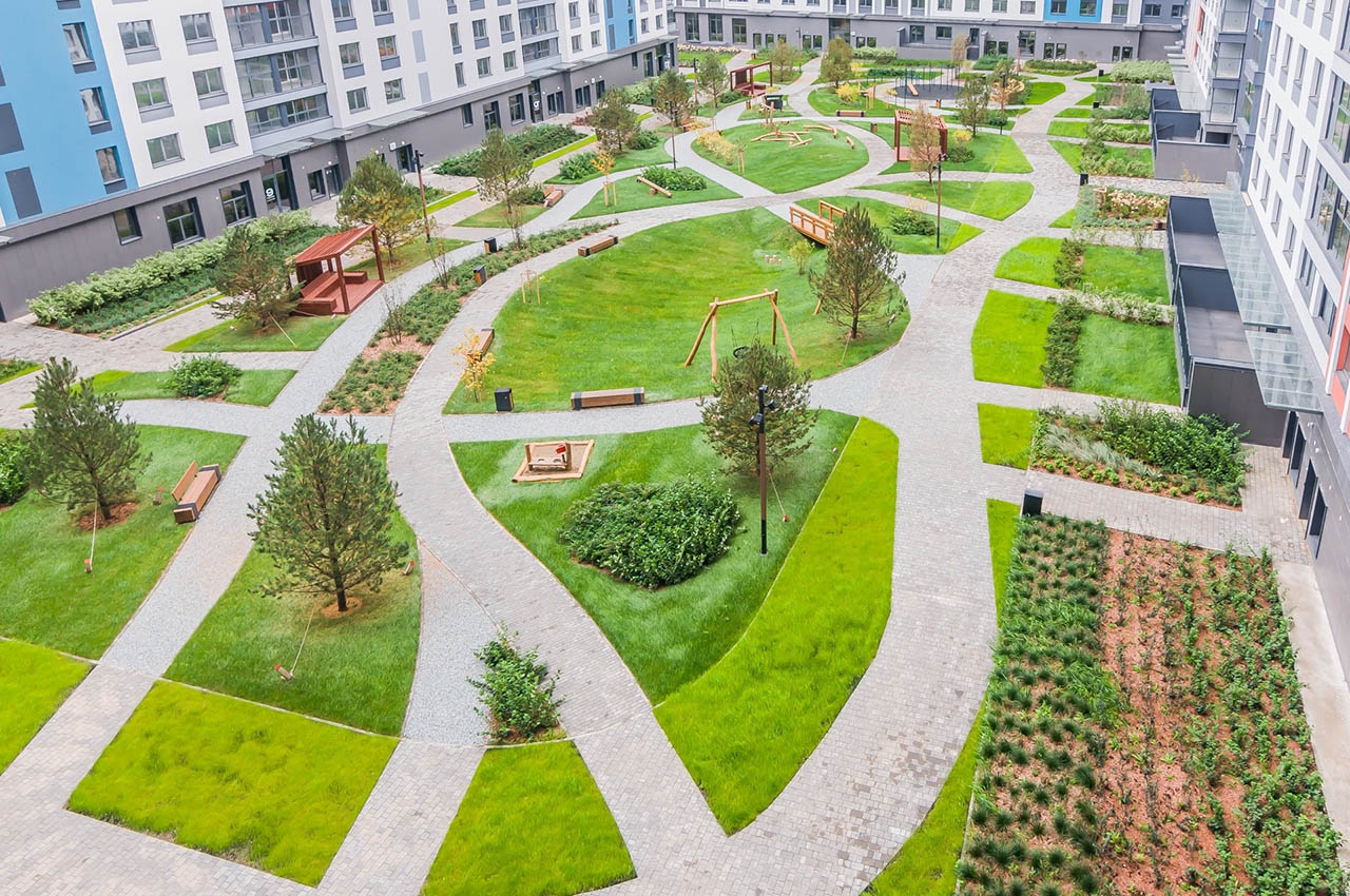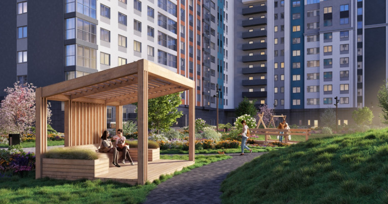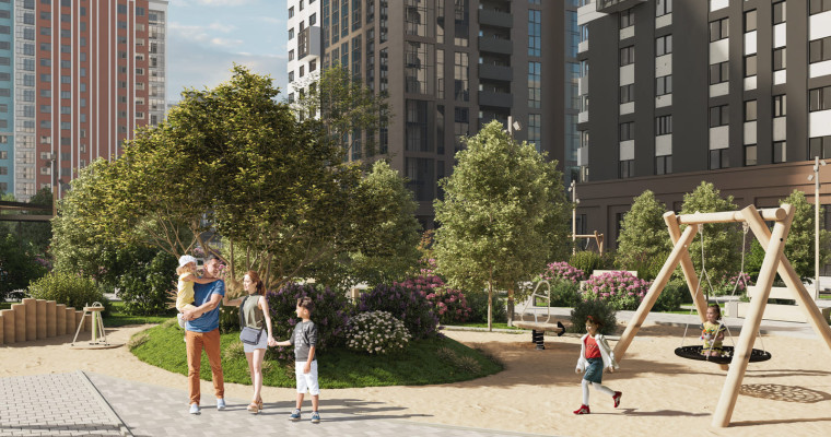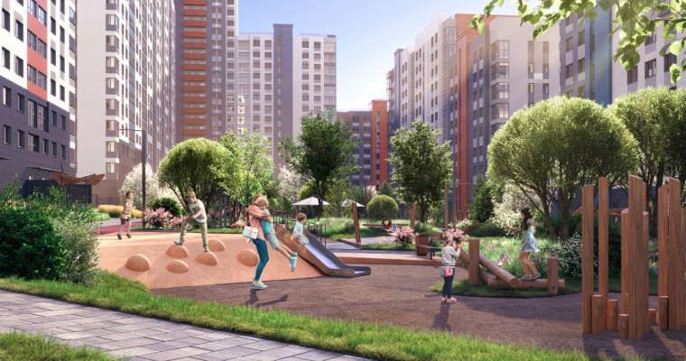 Утопающая в зелени территория комплекса не уступает с точки зрения экологии загородным поселкам и при этом располагается в восточной части Перми. Поездка в центр города занимает обычно не более 17 минут.