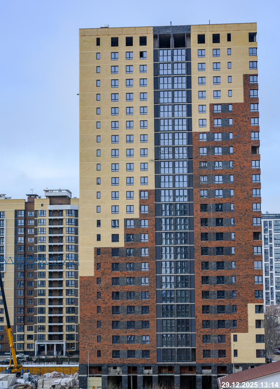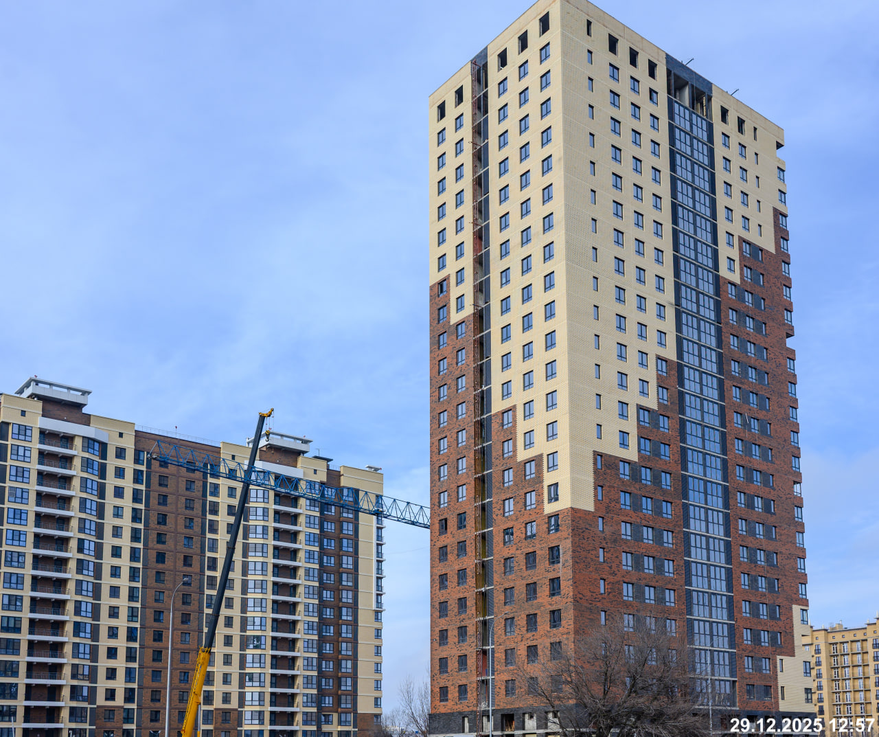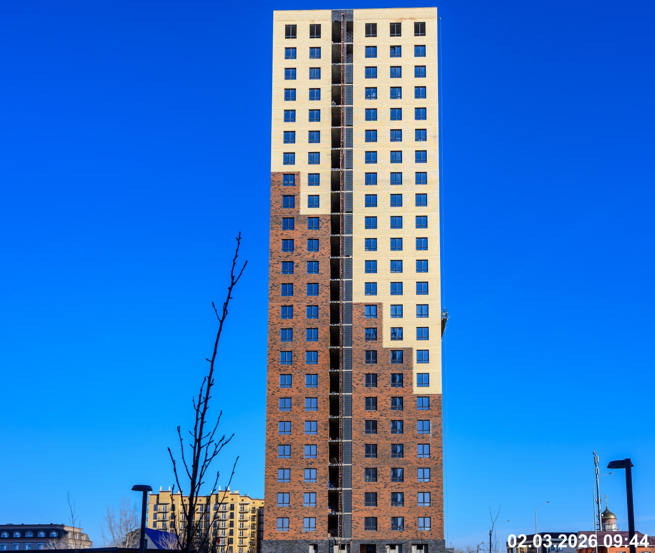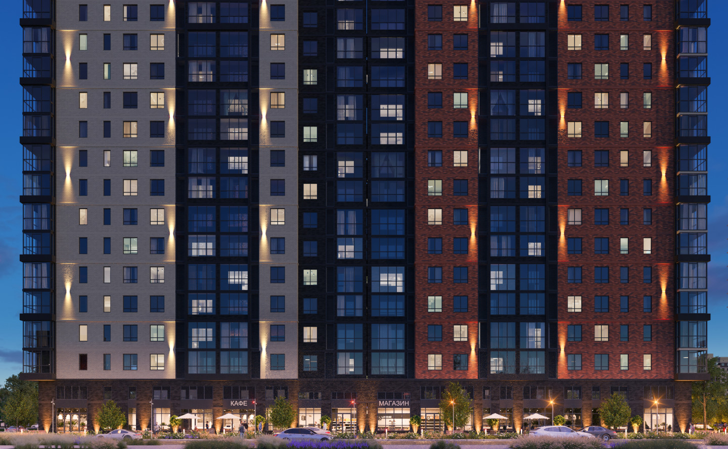 Также обратите внимание на оконный профиль графитового цвета немецкой марки Rehau и на то, какое красивое отражение дает напыление оксида серебра. Светопрозрачная конструкция делает фасад визитной карточкой нашего жилого квартала.