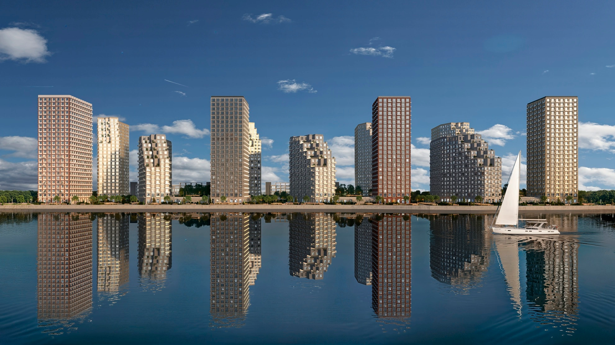 Квартал расположен рядом с живописной набережной, откуда открывается потрясающая панорама реки. Просыпаясь утром, жители смогут наслаждаться прекрасным видом прямо из окна своей квартиры.
